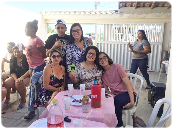 Amigos e colegas contagiados pela alegria da aniversariante